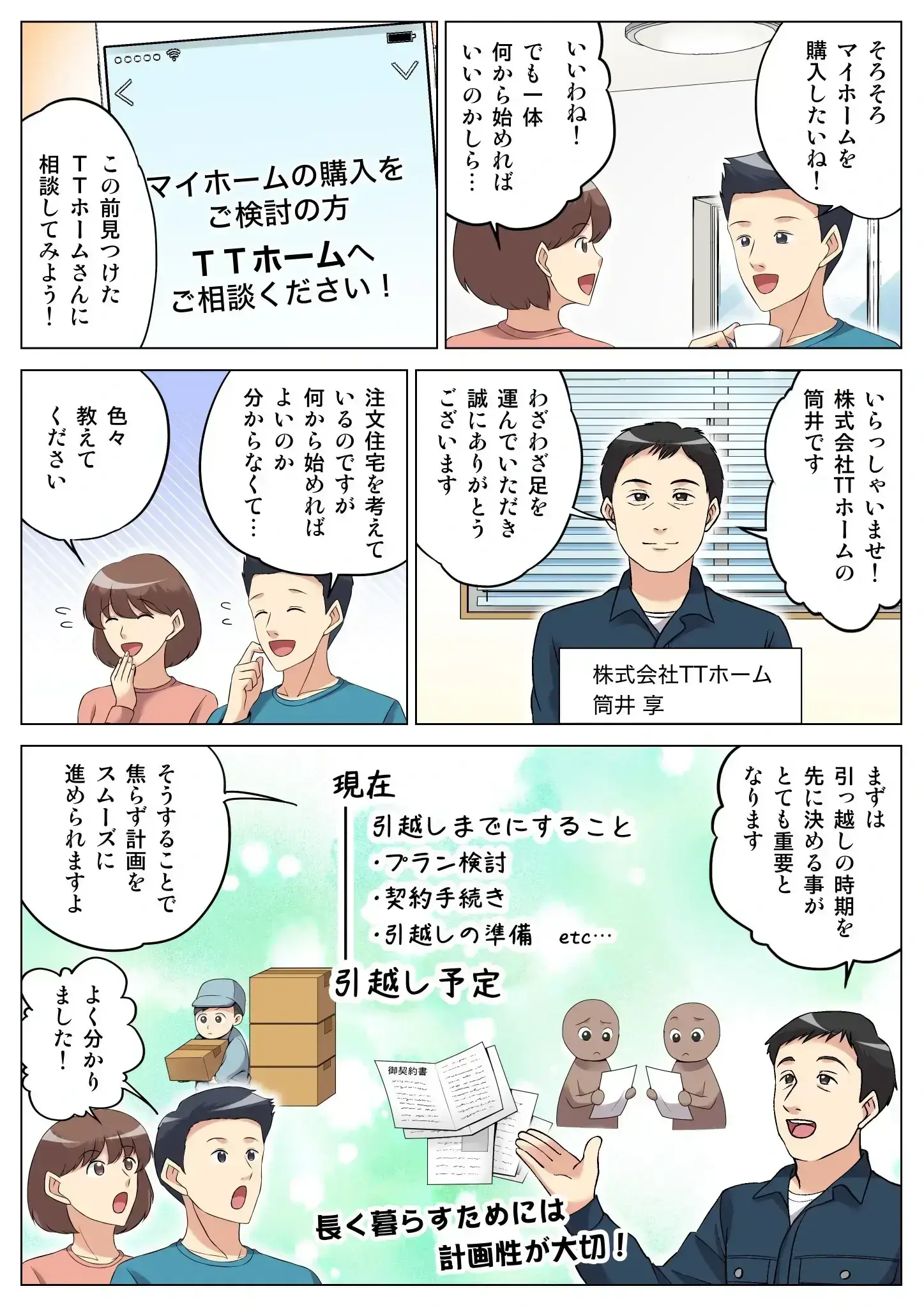 TTホームではある程度決まった建築プランをご用意しているため、家作りの費用やそこでの暮らしをイメージしやすくなっています。新築工事のノウハウをお伝えしながら、プランの検討から工事まで、お客様と同じ歩幅で丁寧に進めてまいります。